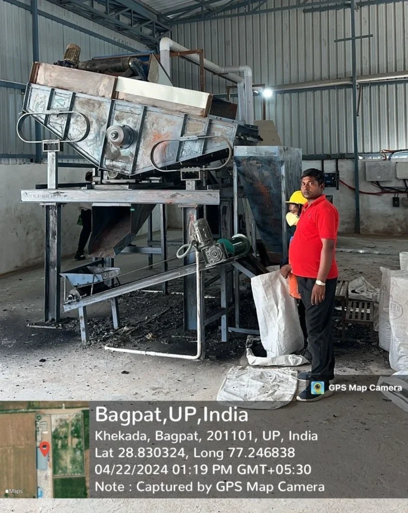 Tyre shredding & crumb manufacturing under process at M/s. Spreco Resource Recyclers (in-house tyre waste recycling facility of M/s. Allied Waste Solutions Private Limited)